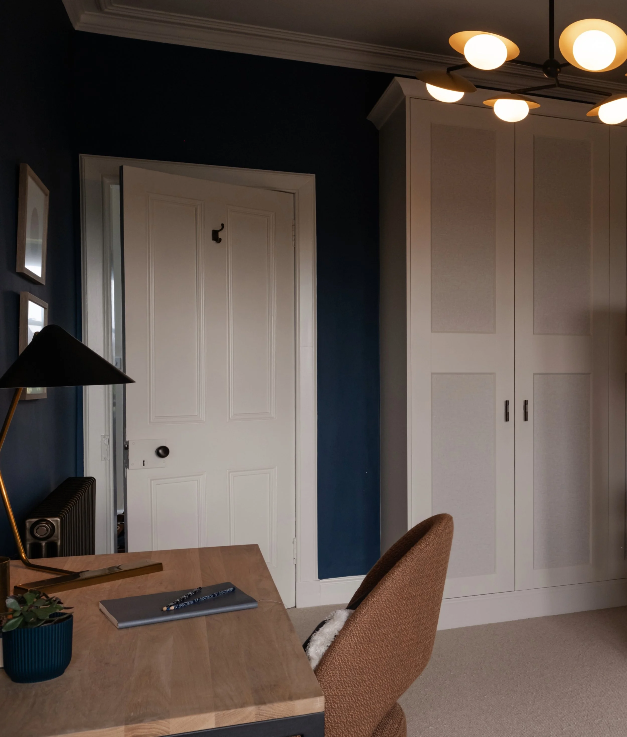 To stretch the budget (essential with a full house renovation on the horizon), we opted for IKEA Pax wardrobes, enhanced with clever upgrades to achieve a bespoke, built-in look. Architectural details like the bay window and recesses were maximised with shelving and a cosy window seat. These additions provide extra storage, a perfect spot for reading, and a space to display treasures.